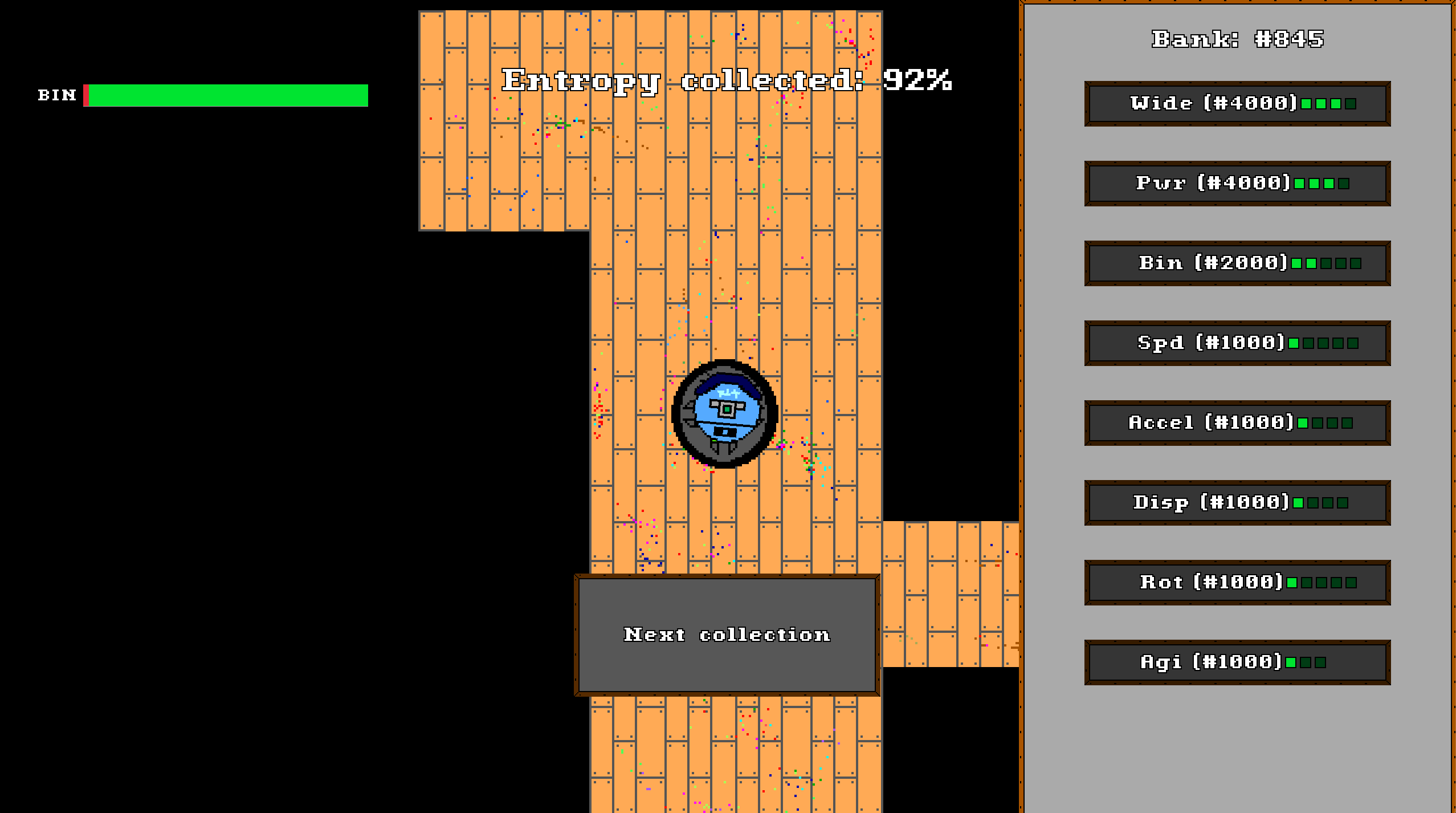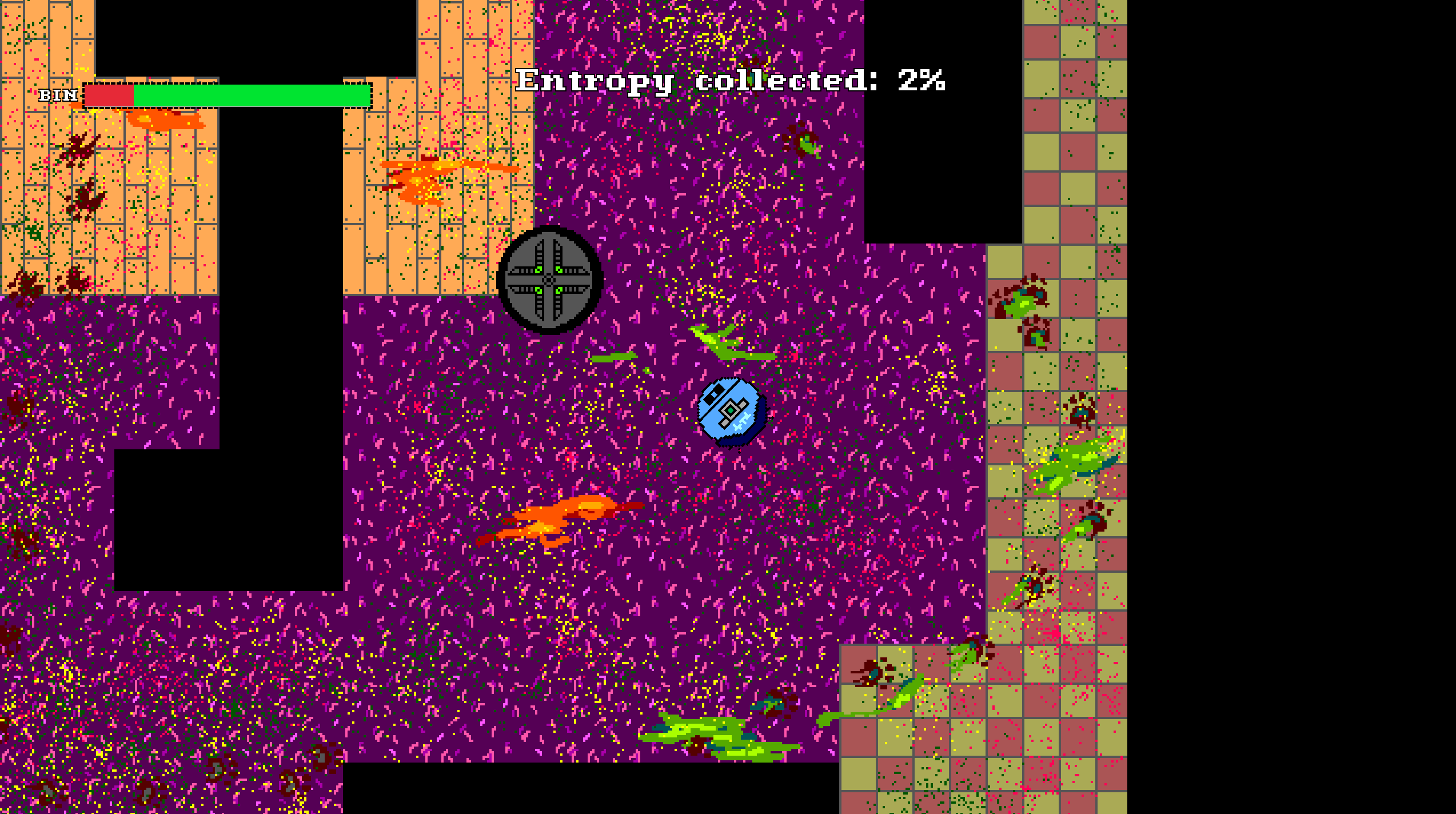 You are Bootya, an intelligence which hates entropy. Unfortunatelly some meatsacks are either lazy or they love entropy, so you have to collect it and dispose of it.